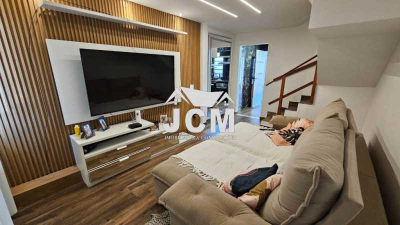 Casa duplex em condomínio fechado, posição frente, sol da tarde, fachada argamassa, próximo ao terminal BRT com portaria 24h, playground, quadra esportiva, churrasqueira. Composto de sala com parede decorativa e 2 quartos em piso porcelanato, cozinha com armários embutidos, piso porcelanato.